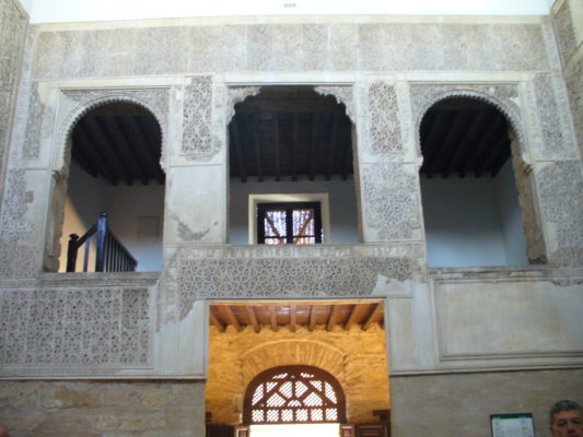 Of the three, the 13th-century Sinagoga de Tránsito and the 14th-century Santa María la Blanca in Toledo look much like small mosques with their pronounced horseshoe arches and arabesque patterns, while Córdoba’s 14th-century Synagogue -although it has no horsehoe arches- has Mudéjar decoration on its walls.