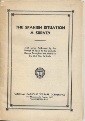 The Spanish Situation: A Survey. Joint Letter Addressed by the Bishops of Spain to the Catholic Bishops Throughout the World on the Civil War in Spain. Translated by William F. Montavon, Washington D.C. 1937