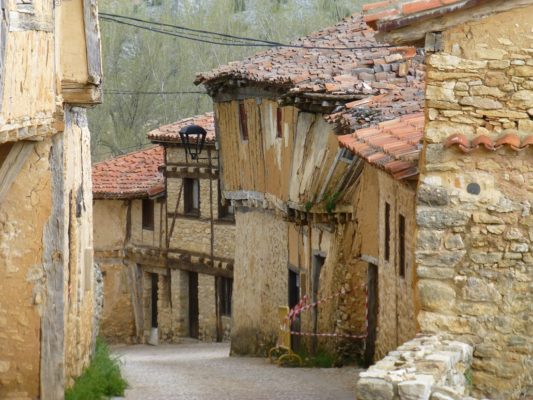 The houses –some dilapidated and tilting— were made of clay and rough stone with exposed beams; further up we passed under crooked wooden arcades.