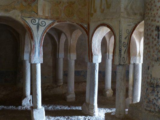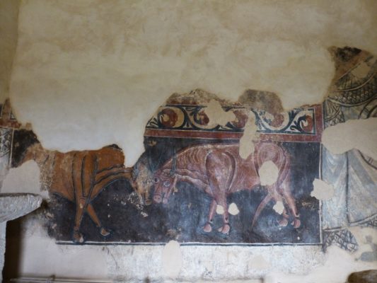For centuries, San Baudelio lay forgotten and was rediscovered in the late 19th century and purchased by some villagers from nearby Casillas de Berlanga. It sprang into prominence in the early 1920s when an American collector, Gabriel Dereppe, bought the contents of the hermitage, specifically a remarkable series of frescoes that covered the interior. This sparked an outcry and triggered a law suit that dragged on for four years before permission was granted by Spain’s highest court for the sale to go ahead. Fortunately, not all the frescoes were transferred, but you can see those that went to the USA in the Boston Museum of Art, the Metropolitan Museum in New York, the Cincinnati Art Museum and the Indianapolis Museum of Art. A sample can also be seen in the Prado Museum in Madrid.