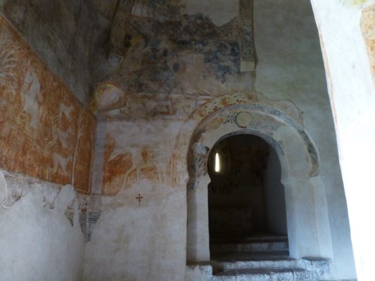 A shaft of light lit up the arches and, looking at them, we could have been in a tiny mosque, so much did they remind us of Moorish arches. Horseshoe arches were already common in Visigothic churches of the 7th and 8th centuries, but their repetitive use -as e.g. in Córdoba’s mosque- is such that many people associate horseshoe arches exclusively with Moorish architecture.