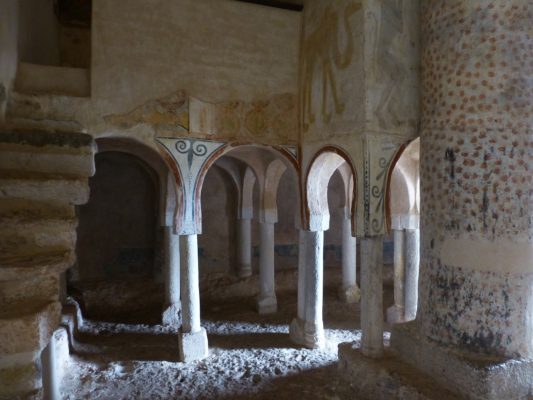 San Baudelio is a Mozarabic construction of the late 11th century, built over a hermit’s cave. The Mozarabs were “arabised” Christians of Hispano-Visigothic origin who lived in or fled from al-Andalus (as the Muslims called the land they occupied). Those who fled carried with them their Hispano-Visigothic traditions albeit much modified by Moorish influence. San Baudelio is an excellent architectural example of the hybridisation resulting from the close contact of these two cultures.
