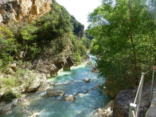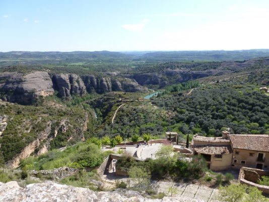 Set in the Sierra de Guara National Park in the province of Huesca, Alquézar is a beautiful brick and stone village spectacularly located on a ridge overlooking a gorge/ canyon cut by the River Vero.
