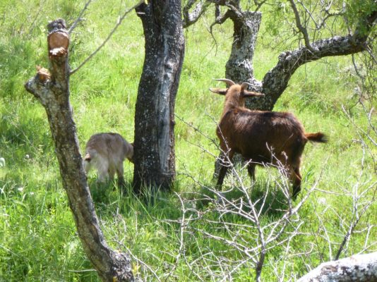 In the lush grass between the olives there were goats chewing contentedly, and the air was filled with bird songs. It was an idyllic scene: the lush variety of greens, the curve of golden-hued buildings, the dramatic silhouette of the colegiata, and the goats and birdsong.