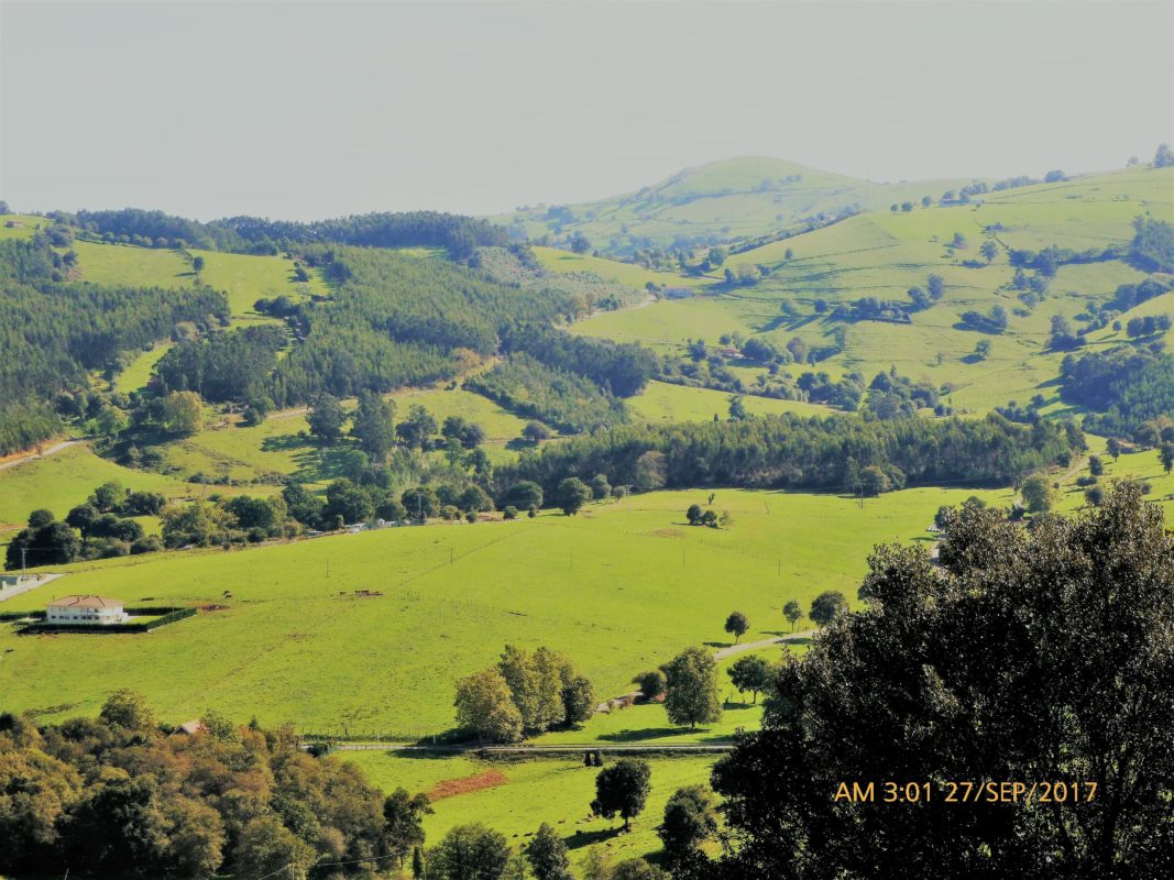 From Argoños, we passed quickly along the edge of the salt-marsh reserve, touched on the A8 highway, and then started up the valley of the Campiazo. We’d forgotten how green and beautiful the north of Spain is, and the valley here was wide with small villages, farmhouses dotting the landscape, fields divided by hedgerows, and gentle, sloping hills some partially covered by trees. Having been brought up in the countryside ourselves, this rural landscape appealed to us very much.