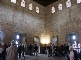 If opulence and disorientation were not enough to impress or cow visitors, the rulers of Granada had one more trick up their sleeve. The centre of power in the Nasrid Palace was the Hall of the Ambassadors, in the Comares tower. The hall is of very modest dimensions.