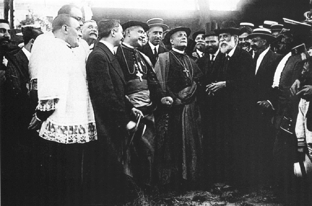 Gaudí with Cardinal Ragonesi: "Gaudí-Ragonesi (1915)" by Unknown - Ana Mª Férrin, Gaudí, de piedra y fuego, Ed. Jaraquemada, Barcelona (2001), ISBN 84-932015-0-2. Licensed under Public Domain via Wikimedia Commons - http://commons.wikimedia.org/wiki/File:Gaud%C3%AD-Ragonesi_(1915).jpg#/media/File:Gaud%C3%AD-Ragonesi_(1915).jpg