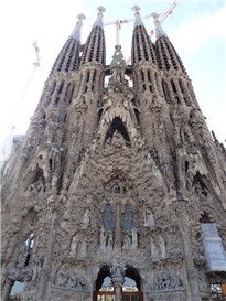 Image of Passion facade with towers: "La Sagrada Familia (7852713848)" by Craig Sunter from Manchester, UK - La Sagrada FamiliaUploaded by russavia. Licensed under CC BY 2.0 via Wikimedia Commons - http://commons.wikimedia.org/wiki/File:La_Sagrada_Familia_(7852713848).jpg#/media/File:La_Sagrada_Familia_(7852713848).jpg