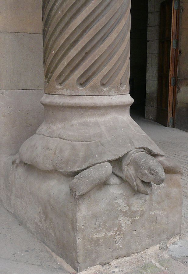 Image of tortoise supporting pillar by Image of tortoise by Stanislav Kozlovskiy http://commons.wikimedia.org/wiki/File:Sagrada_Familia,_Turtle.jpg