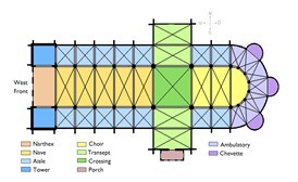 General plan of Gothic cathedral:"Cathedral schematic plan" by Lusitania, with alterations by TTaylor - Wikimedia Commons. Licensed under CC BY-SA 3.0 via Wikimedia Commons - http://commons.wikimedia.org/wiki/File:Cathedral_schematic_plan.PNG#/media/File:Cathedral_schematic_plan.PNG.