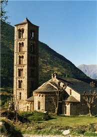 Romanesque architecture appeared in Catalonia around 1000 AD, and is one of the glories of that autonomous community. It is said that there are over 2,000 Romanesque buildings in Catalonia, the stars of which are the small, beautiful churches scattered in the rural valleys of the north. Particularly striking are the churches in the narrow Vall de Boi, situated in the Alta Ribagorça region of the high Pyrenees and surrounded by steep mountains. It is in valleys such as the Valle de Boi (declared a World Heritage Site in 2000) that we find one of the most characteristic features of Catalan Romanesque, which distinguished it from Romanesque churches in the other regions of northern Spain: the striking Lombardy-inspired bell towers. Typically detached from the church, these tall (up to 6 stories), slender, square belfries in natural stone rise elegantly to the sky, their bulk broken on each floor by long, columned windows on all four sides, which diffuse light throughout the interior. These towers were built by Lombardy craftsmen** who entered Catalonia via Languedoc and Provence, following a long-established travel route between eastern Spain and Rome. Lombardy (in northern Italy) formed a natural link between Catalonia and the Holy City.
