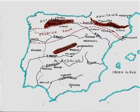 Between 711 and 720 Muslim forces swept northward from Gibraltar through the Iberian Peninsula and into the south of France. The history of early Christian resistance to the Moors (as the Muslim newcomers are commonly called in Spanish history) is obscure, partly conjectural and dependent of chronicles written in the 9th century and later. Resistance to the Moors centred on two areas: 1. the Cantabrian mountain strip along the north coast and, 2. the Pyrenees mountain range forming the border with France. In this page, we’ll deal with resistance in the Pyrenees and the formation of the early Christian kingdoms of Pamplona and Navarre. We’ll touch upon Aragón and Catalonia, but there are separate pages on each: see Aragón and Catalonia.