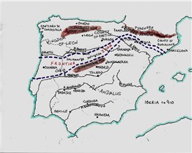 During most of the 10th century Christian lands suffered numerous raids (razzias) undertaken first by Abd-al-Rahman III (r. 912-961), the most powerful of all Andalusi leaders, and later by the Andalusi viceroy, al-Mansur (de facto leader of al-Andalus from ca 980 until his death in 1002). Al-Mansur’s raids are particularly noteworthy for their frequency and grand sweep. He zigzagged over Christian lands, from Barcelona (985) to Coimbra (987); he attacked León and Zamora (988), and numerous smaller places. The high point was the raid on Santiago de Compostela (Galicia) in 997, in which the town was razed, the church destroyed and its bells taken to Córdoba –on the backs of prisoners-of-war-- to be used as lamps in the Great Mosque.