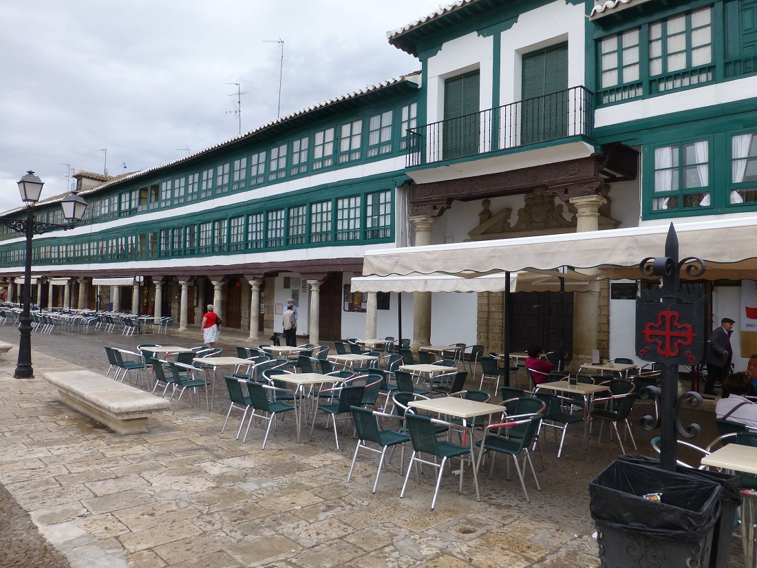As soon as we were settled in, we headed for the Plaza Mayor, Almagro’s main attraction and one of the most unusual squares in Spain. Rectangular in shape, it seems less Spanish and more northern or central European in character. The explanation goes back to the 16th century when the wealthy Fugger brothers, German/Flemish bankers to Charles/ Carlos V were given rights to develop the nearby mercury mines of Almadén. The Fuggers established Almagro as their base and brought with them fellow countrymen and commissioned the building of the square.