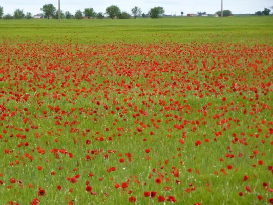It was a pleasantly sunny spring day with a nip in the air as we left Almagro. We took the CM 4124 through Bolanos de Calatrava to Manzanares, stopping only to take photos of poppy-filled fields. Soon we arrived at the major highway NIV E5 heading north.