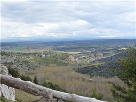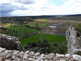 Here, as we headed south towards El Burgo de Osma, we found ourselves at the top of a dramatic gorge, its base washed by the River Lobos. The panoramic view was stunning. Down at the foot of the gorge, we could see the village of Ucero and above it the ruins of a Templar castle perched close to a sheer cliff. Beyond the village, a wooded landscape interwoven with tilled fields stretched into the distance.