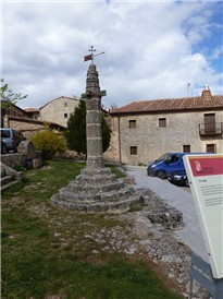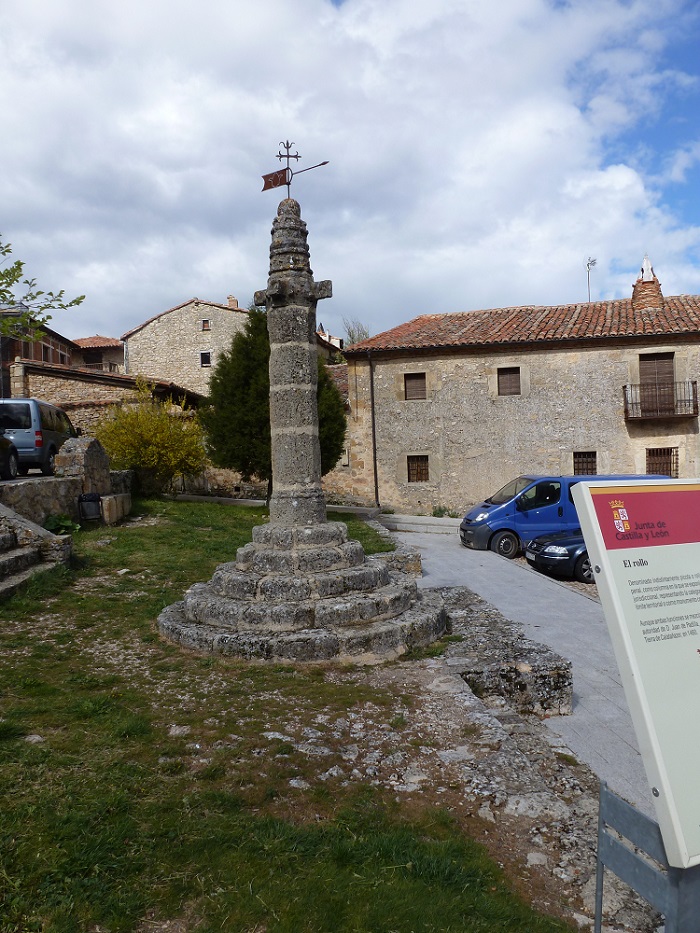 We passed Calatañazor’s 12th-century Romanesque church to our left, and strolled through the irregularly shaped Plaza Mayor with its striking rollo or picota; the cars parked in the square seemed out of place in this ancient village. Just beyond the plaza, the 14th-century castle, built on an earlier fortress, perched on the edge of a precipitous drop.
