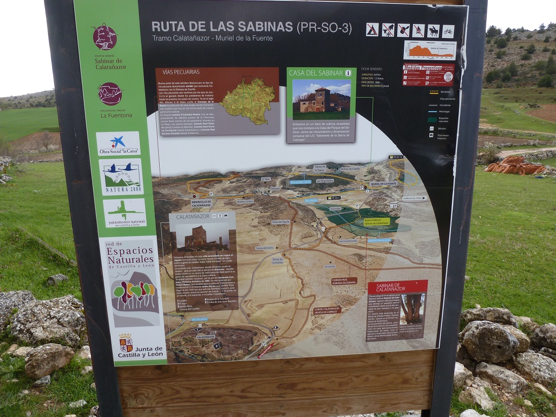 It rained heavily while we had lunch, and the cobblestones were rather slippery when we returned to our van parked near the hermitage. Here we saw a notice board with a colourful map detailing the natural attractions of the area: trees, rivers, lakes, cañadas (medieval cattle routes that stretched from the Duero valley to Extremadura and Andalusia). Of particular interest was a grove of sabinas (a kind of juniper) native to the region. We decided to follow the suggested route, a choice we did not regret. It was a winding road mainly through forest until we came out at the SO 920 just after the village of Vadillo.