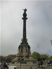 Back on the bus, we headed down hill to the port. Suddenly, the sun disappeared as a mist dropped over us, the temperature fell dramatically, and we feared that there might be a change in the weather. The mist was still hanging around when we got to the Columbus statue at the foot of the Ramblas. It may seem strange to see Columbus celebrated in Barcelona, but the Monument a Colom (Colón in Castilian) was built for the 1888 World Exhibition and commemorates Christopher Columbus’s return in 1493 from his first voyage to America (Las Indias). Although Columbus had received warm receptions in Lisbon, Seville, Córdoba and Valencia, it was in Barcelona that Columbus enjoyed official royal recognition when he was welcomed by Ferdinand and Isabel, the Catholic Monarchs. Prior to a celebratory ride through the streets of the city, the Monarchs invited Columbus to sit beside them (a rare privilege, although his chair was smaller; propriety had to be maintained!) and recount his adventures. Among the "treasures" he brought back were a group of Indians, the first to be seen in Europe.
