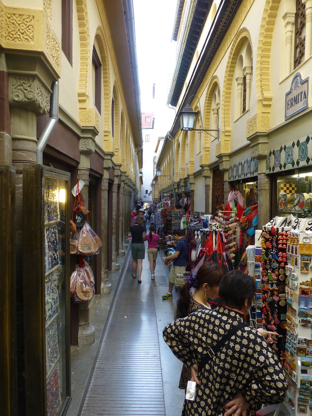 Around the corner from the hotel is the Plaza Isabel la Católica (26). Cross the road –the Calle de los Reyes Católicos-- to the Gran Vía de Colón and in five minutes you are at the 16th-century Renaissance Cathedral (2) and its adjoining Royal Chapel (Capilla Real, 32), where the Catholic Monarchs, Ferdinand and Isabel are buried. Across from the entrance to the Royal Chapel is the 14th-century Madrassa (9), a former Muslim university; a few steps further down is the Alcaicería (24). This former Moorish silk market was destroyed by fire in 1850 then rebuilt in the late 19th century. Its narrow alleys and numerous souvenir stalls now serve as an exotic and rather kitschy attraction for tourists.