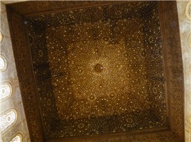 The art we see in the Royal Residences is very abstract, based on the Muslim precept that to attempt to portray the world realistically is both to challenge Allah (the only creator) and encourage idolatry. The only exception you can find in the Hall of the Kings (in the Court of the Lions), which was closed for renovations when we were there (although there were photos outside of the paintings).