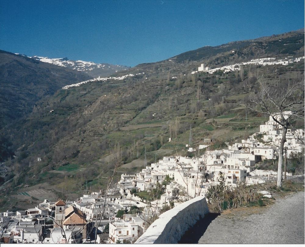 After a wonderful day in Granada, we now looked forward to a trip to Las Alpujarras, a mountainous region on the south side of the Sierra Nevada from Granada. It’s a very picturesque area dotted with white villages and scattered farms (cortijos). During our year in Granada (1987-88), Margaret and I had made the roughly 80-kilometre trip to Las Alpujarras several times, and fell in love with the area: its natural beauty, the melodious sound of its numerous streams and waterways, the gentle tinkling of goat and sheep bells, the smell of wood fire, the aroma of bread baked in wood-fired ovens, groves of olives, figs, citrus trees, almond, chestnut and oak trees, the crowing of roosters and chickens clucking round doorways… In all a tranquil retreat after the bustle of Granada. If you have transportation, you really shouldn’t miss Las Alpujarras!