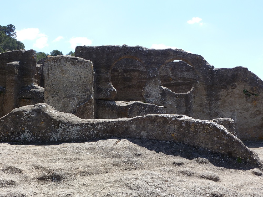 What’s interesting of what’s left is the horseshoe arch in the centre of the carved rock. This may have been influenced by the horseshoe arches from Córdoba’s Great Mosque (the first part of which had already been built) but it more likely harkens back to the horseshoe arches of Visigothic churches, which predate the mosque in Córdoba. In fact, it has been argued that it belonged to a Christian community that survived in this isolated mountain spot of al-Andalus (Muslim Spain) after the arrival of the Moors; others feel it was built by Ibn Hafsun after his conversion to Christianity and is therefore a Mozarabic work (Mozarabs were Christians who lived under Moorish rule).
