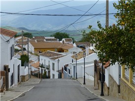 From Bobastro our road took us almost to Ardiles, where it joined the A 357 heading for Campillos. For several kilometres, we skirted two (of the three) reservoirs created by the Guadalteba-Guadalhorce dam. Approaching Campillos, we could see, silhouetted in the distance to our left, the castle of La Estrella perched above the hilltop town of Teba. Soon we were bypassing Campillos, an agricultural and leather manufacturing centre. The town seemed to be prosperous, with new buildings and (rather unattractive) row houses, but whether they were occupied is another matter. The construction boom that collapsed in 2008 left thousands of buildings unfinished or empty as contractors ran out of funds or buyers were simply unable to keep up payments.